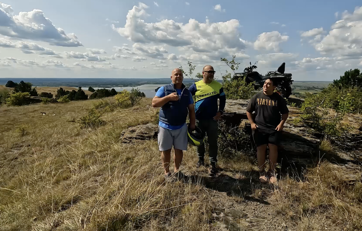 Kad smo stigli do Ramske tvrđave, pružio nam se veličanstven pogled na Dunav i okolinu, što je bio savršen trenutak za kratki predah i priču s Muđom i Ćaletom o njihovom ulasku u magični ATV svijet.