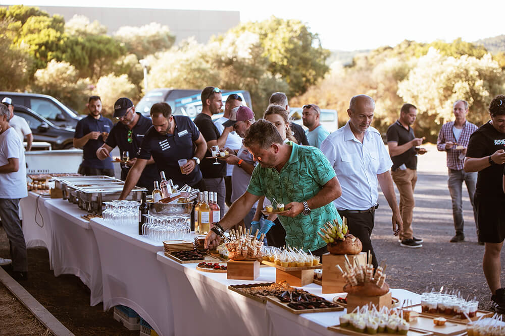 Poslije dvije zanimljive ali i iscrpne vožnje uslijedio je ručak u sada već dobro poznatom restoranu u sklopu Chateau de Lastours vinarije, gdje su svi posjetioci imali priliku da se malo odmore, razmene iskustva sa vožnje i utiske o novim vozilima, ali i da uživaju u gastronomskim čarima Francuske kuhinje restorana “ La Bergerie“.
